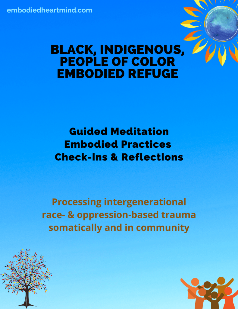 BIPOC Embodied Refuge is held and guided by the teachings that liberation arises both from within the body and in community when cultivated and regularly practiced.